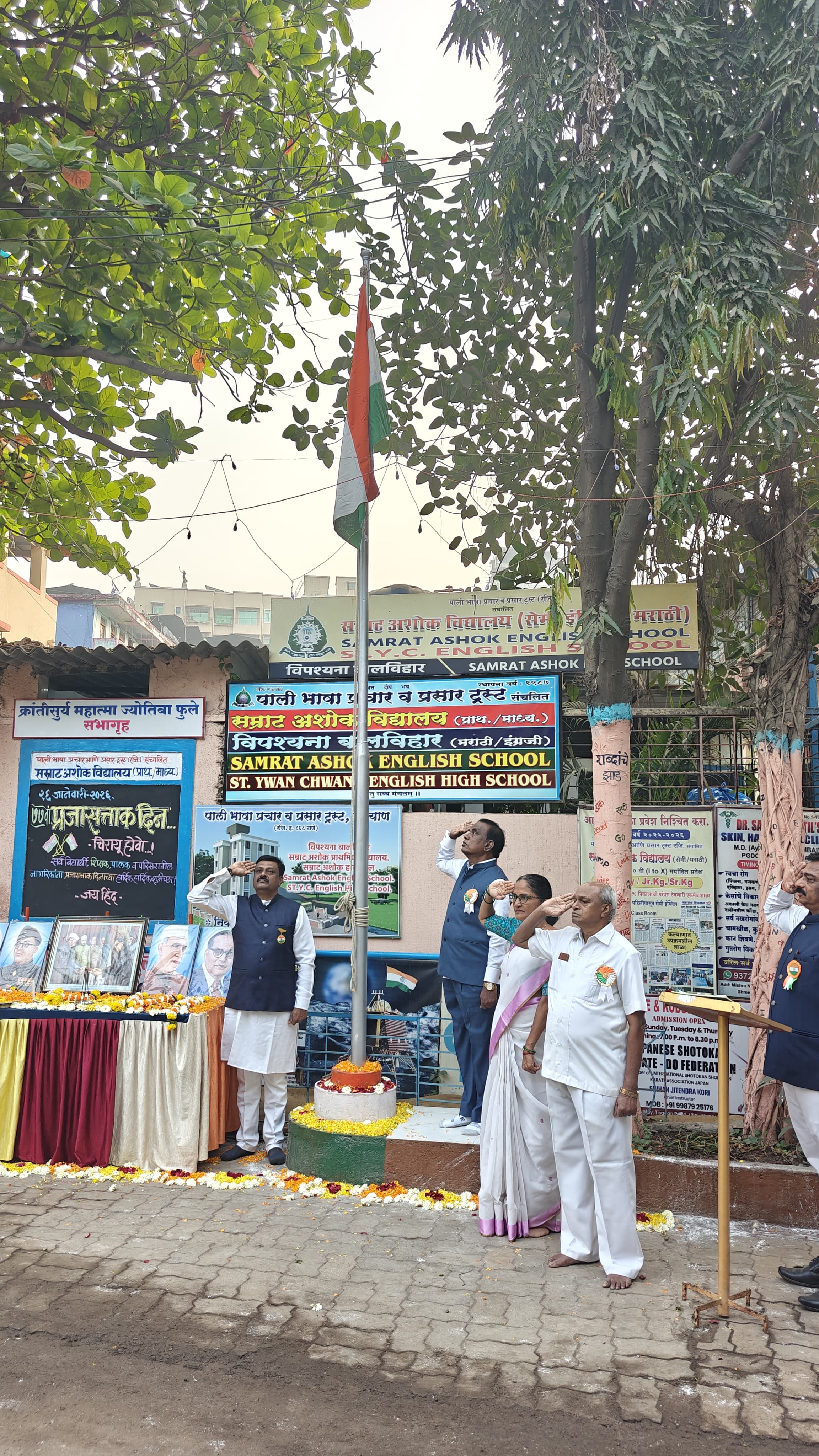 कल्याण : पाली भाषा प्रचार आणि प्रसार ट्रस्ट संचालित सम्राट अशोक विद्यालय सेंट वाय सी इंग्लिश स्कूल सम्राट अशोक इंग्लिश स्कूल आणि विपश्यना बालविहार यांच्या संयुक्त विद्यमाने प्रजासत्ताक दिन साजरा करण्यात आला. भारतीय संविधानात लोकशाहीचा चौथा स्तंभ प्रसार माध्यम पाहता संस्थेने प्रमुख मान्यवर म्हणून ज्येष्ठ पत्रकार आनंद गायकवाड यांच्या हस्ते तिरंगी ध्वजारोहण केले.
